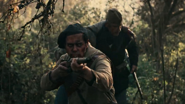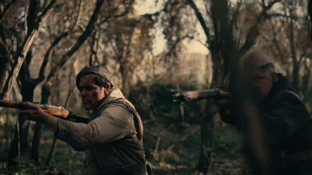 У Рихарда немецкий маузер, но почему он с Шнайдером и Флаке, на которых советские пилотки? Хотя у них тоже маузеры. А Рихард в этой кепке как Че Гевара. Ну и, конечно, как же Рихард без красной повязки. И макияжа-маникюра. Война войной, а красоту никто не отменял.
