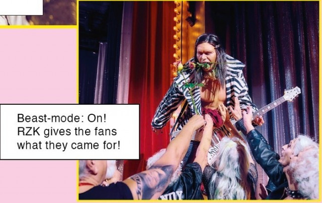 О Боже о Боже о Боже, цей животик Ріхарда! Його справжній животик! Він бездоганний! Королева Круспе у всій красі, і ця краса неперевершена! Ріхард повинен у турі виходити з цим животиком і демонструвати його, як він робив у ЛІФАД-МіГ, це вершина естетики, ідеальне поєднання м'якості і пружності. Прям як лозунг Зигзагу – красивіше, тугіше… Господи, весь цей образ Ріхарда – це торжество гармонії, тут все гармонійно поєднано, щоб підкреслити всю велич і розкіш Королеви Круспе, і кожна прикраса Королеви має значення: заколочки підкреслюють взбалмошність Королеви, перли-браслет і персні – її м'якість, важке кольє – її ненаситність, орден з перлинкою – її красу…