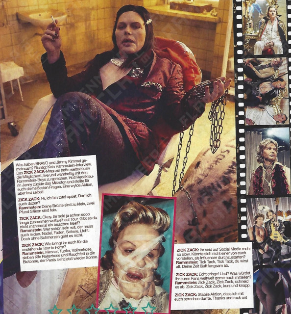 Цікаво, що підписи в журналі і підписи на опублікованих Раммштайн офіційним фото з журналу відрізняються. І я не про німецьку і англійську мову. Підпис про «свіже повітря» в оригіналі про те, що у Ріхарда stage fright, а шедеврального bottoms up нема в журналі. Можливо, хлопчики, що ведуть інсту Раммштайн, послухали жарти самих раммштайнів, коли ті гортали журнал, і використали їх.