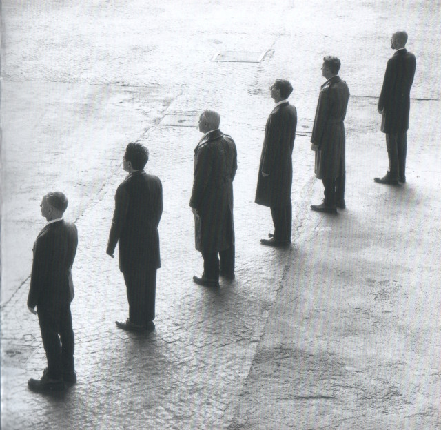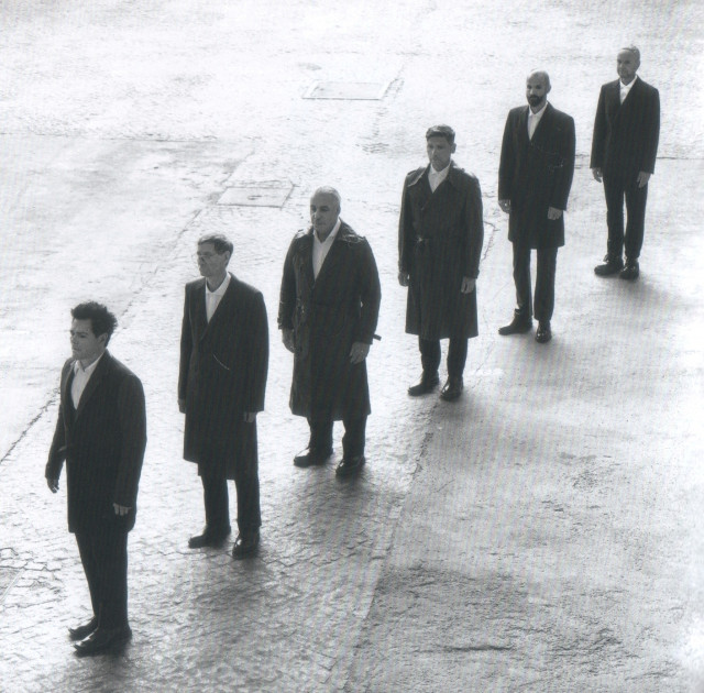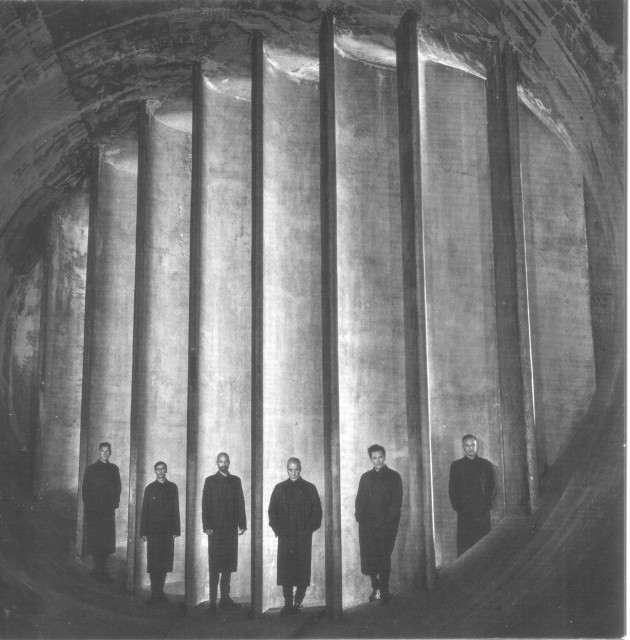 Раммштайни у воронці. Пауля можна пізнати по характерній позі з руками за спиною. Флаке праворуч, в одязі іншого кольору. Тілль виділяється білою головою. Інших важко розрізнити. Ну й намерзлися вони там напівроздягнені.