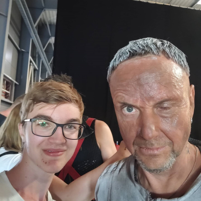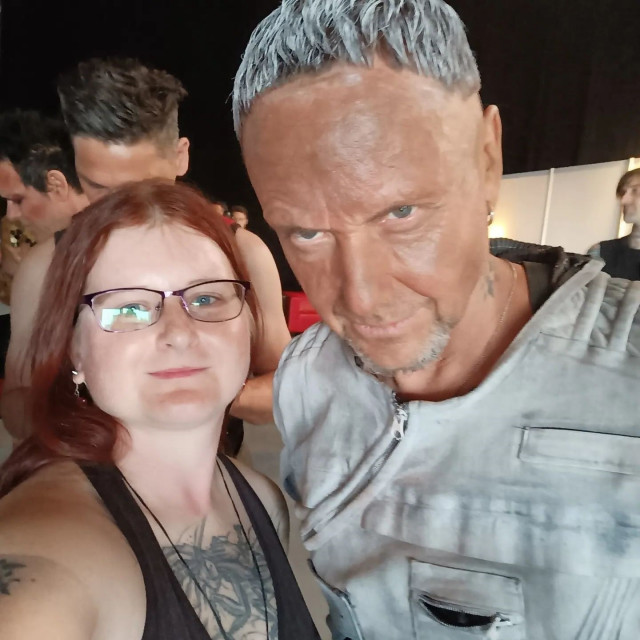 О Боже яка красуня. Це просто божественне личко, і яка зачіска з пір’ячком. Який макіяж, Ріхарду треба не тільки фешн-блог вести, а й блог по макіяжу. Очі ідеально підведені, тіні накладені, бровки зроблені, контур личка підкреслений. Оці виділені щочки… Господи, це ж жіночий макіяж для вечірки, Ріхарде… Але чому Ріхард у чешуйчатій кофті?! Він що, у ній вийде і буде в ній весь концерт? На фото Шнайдера видно Ріхарда – то збоку у нього зачіска не така ідеальна, вже ручками з одного боку в неї влізли.