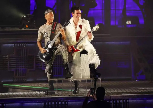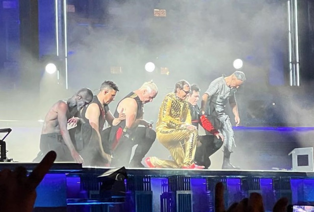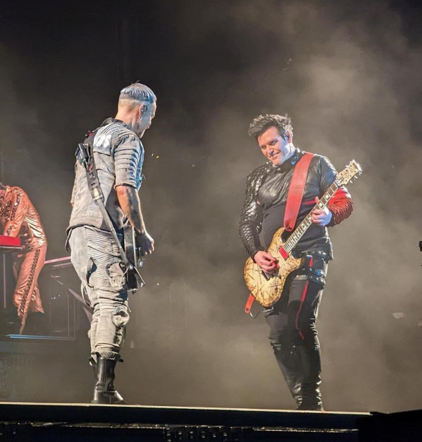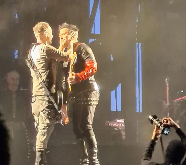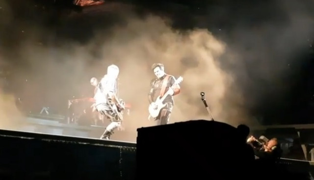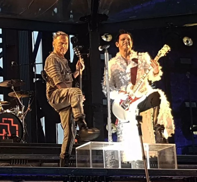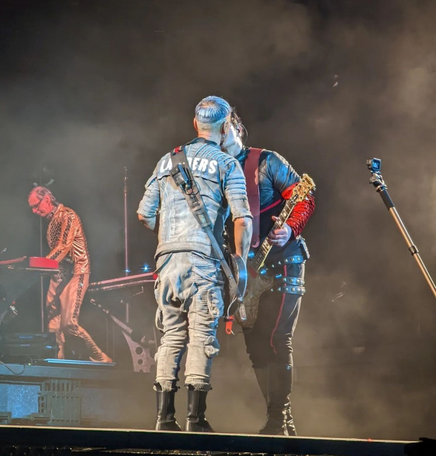 Армія фото https://www.instagram.com/p/Cdlpta2ORQY/ Ріхард у плащі. Господи, як він виставив ногу у цьому плащі. Королева. Але тепер що, на сцену виходять гітаристи першими, а не Флаке між ними? Чи це момент з середини пісні? Вони не можуть не дивитися один на одного, вони постійно дивляться.