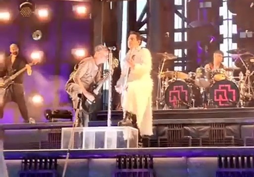 Ріхард всю пісню поправляв ремні. Що йому там муляло – це тільки він знає, але реально він постійно їх руками перебирав і поправляв. Штани з нього сповзли (це перший концерт туру, да, а штани вже сповзають), і наймиліший животик оголяється для взорів всього світу. Новшество цього туру – Ріхард більше не цілує тьоток у лобика. Ріхард просто поаплодував їм. Під прискіпливим поглядом герра. Герр стояв і чекав на Ріхарда. І вже геть не дивно, що коли Ріхард закінчив з тьотками, гітаристи обнялися. Притому вони одночасно потягнулися один до одного, це не було ініціативою когось одного з них. Обнялися, зіскользнули ручками по тілам один одного і спустилися вниз, Пауль традиційно перший пішов.