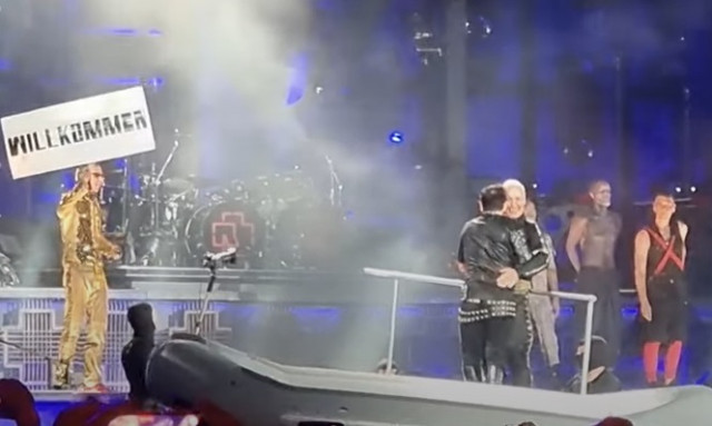 Відео Армії, звідки фото, що я запостила вище https://www.instagram.com/p/CdlskZtMJxF/ Вони виходять тільки вдвох! Виходять вдвох рука об руку! Як по проходу до вівтаря. І стоять вдвох, аж поки не вийде Тілль, Оллі і Флаке відразу грають на своїх місцях. Це щок, це реально шок. Пісня звучить безумно прекрасно, це шедевральна відкривашка. Ріхард красується вовсю, і знову поправляє правий навушник. Що ж це за прокляття у нього – що не тур, так проблеми з навушниками.