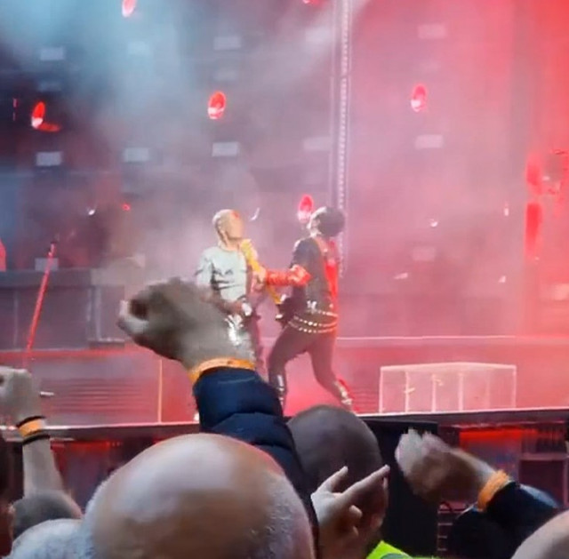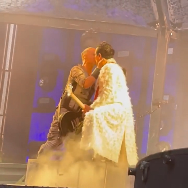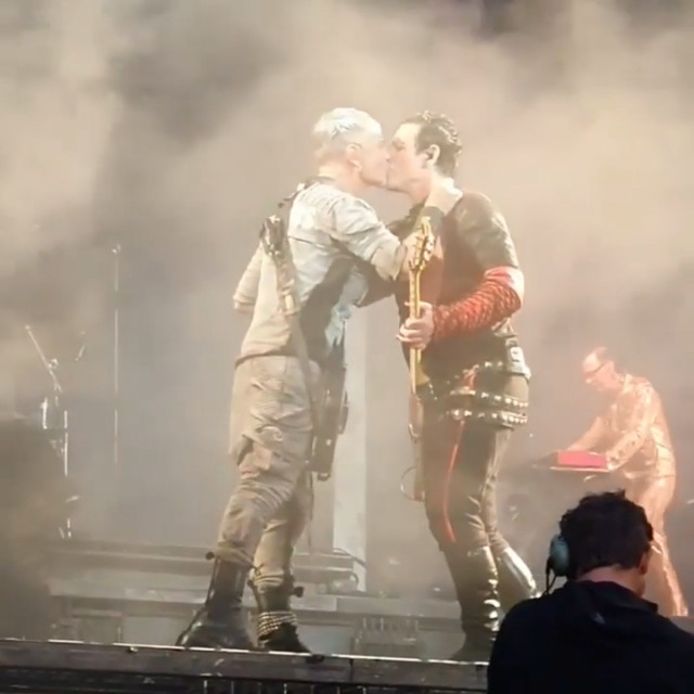 Аусландер. Гітаристи гралися собі, а народ почав скандувати kiss. Притому першими почали вимагати поцілунок чоловічі голоси. Гітаристи повернулися до народу, послухали, дама протягнула руку до герра жестом «прошу пана» і пан герр повинувався. Кусс вийшов коротким засосиком, але яка дама весела після нього. Дамі подобається така увага https://www.instagram.com/p/CfdAHwDl7bv/