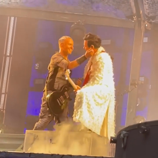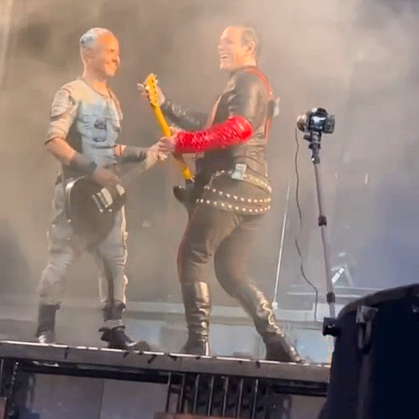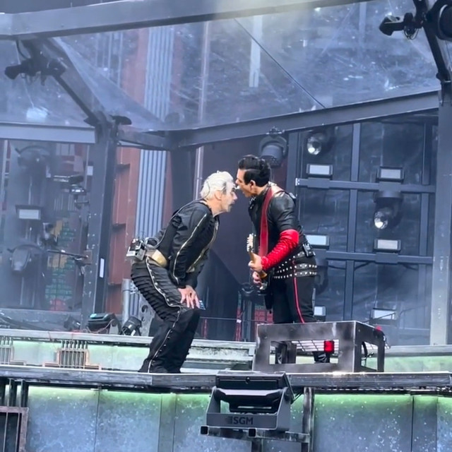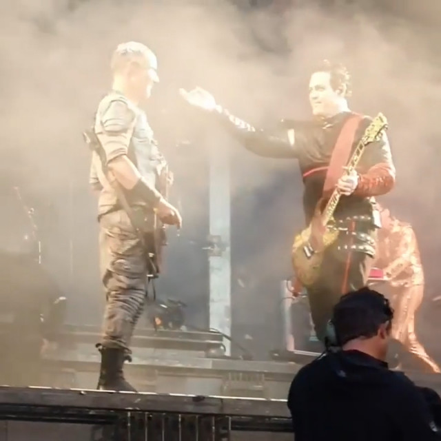 І в Кардіффі на МНВ дама ходила в гості до герра. Тілль товкся біля підставки Ріхарда, то ж Ріхард пішов на місце Тілля, ну а звідти і до герра недалеко, Ріхард уже постійно на МНВ співає в мікрофон Пауля https://youtu.be/sI9rOPtT35Q а Кох своєю палкою знімає гітаристів, чому він ні в один відеозвіт не включив МНВ? Ніженьки Ріхарда так і є худесенькі.