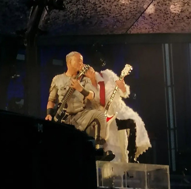 Прощальні поклони https://youtu.be/qZHtgim2c6Y Препаскудно заснято, як гітаристи обнімалися. Про те, що вони обнялися, чути з ору натовпу, натовп зшаленів. А Ріхарда заводить така реакція народу, він просить народ кричати ще. Пауль глянув на сяючого Ріхарда і також став заохочувати народ.