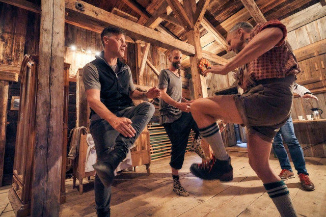 О Боже, герр реально як хлопчик-першокласник у штанцях і гольфиках. Такий хлопчик-розбишака. У Оллі супер носки, хай подарує їх Ріхарду, щоб носити з халатиком-зеброю. Цікаво, вони довго навчалися тому танцю?