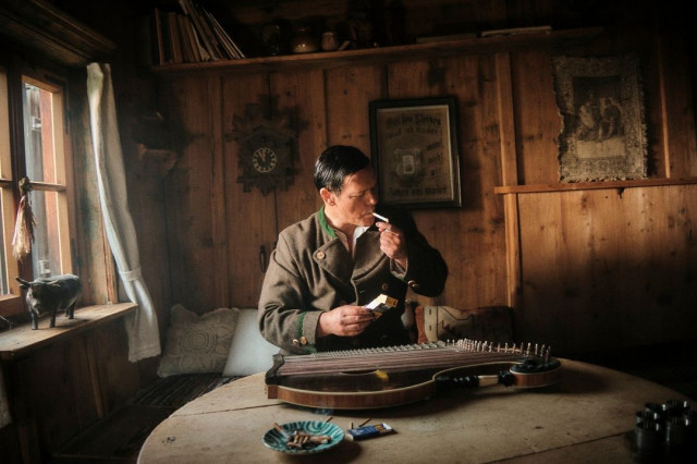 Господи… це спеціально? Оце спеціально Ріхард усівся серед кружевних подушок? Файнес фройляйн запрошує до себе в світлицю. Це ж не чоловіча кімната. Це кімната… ну да, це кімната Ріхарда, і Ріхард типовий Ріхард з гуслями замість гітари і цигарками, і цей типовий Ріхард абсолютно гармонійно виглядає серед подушок. Єдине, що ріже око – сучасна пачка цигарок, і що ж він не хоче користуватися антуражними сірниками, а запалює цигарку своєю запальничкою. Але в мене шок від цього фото. Ріхард виглядає як реінкарнація Ріхарда з минулого життя, його «Я», що жило сто років тому, і це «Я» Ріхарда тільки що приймало свого милого друга на цих подушках, а тепер, коли друг пішов, Ріхард накинув на себе піджак, не потрудившись застібнути сорочку під ним. Господи, це наче кадр з життя реальної файнес фроляйн, що жила сто років тому, ховала у підвалі свої наряди, а у світлиці лежала на подушках з милим другом.