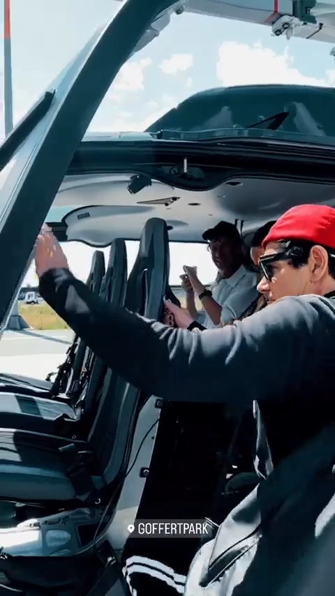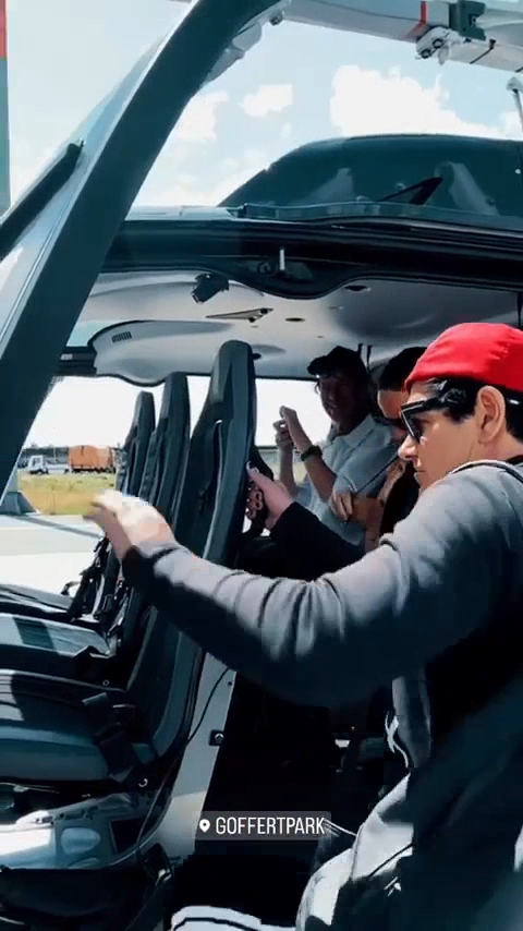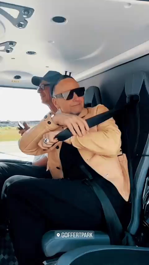 Які сонечка. Звісно, Ріхард всівся коло Пауля. Бідний Флаке. Але, але де рожева кофточка, це що таке?! Якщо Ріхард учепився в щось, то буде таскати місяцями, невже ми до кінця туру тепер будемо бачити стару чорну кофту, а не рожеву милоту? Добре, що хоч червона кєпочка залишається. Ріхард сидячи вдома так нігтями і не зайнявся, вказівний палець вже геть злущений. Знову окуляри на горловину почепив, що він збирається читати у вертольоті, сидячи поруч з Паулем? Про те, схуднув він далі чи поправився, ми побачимо вночі, а от м’яку округлість цицечки навіть ця стара кофта не сховає. Личко у Ріхарда незадоволене, але надута нижня губка, скоріше всього, відноситься до сходів вертольоту.