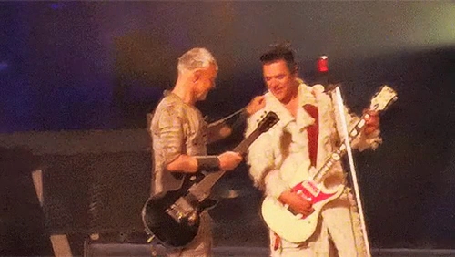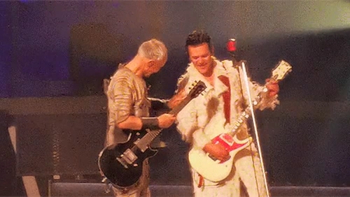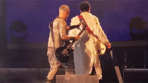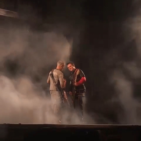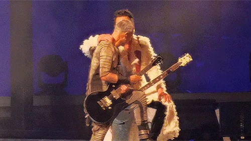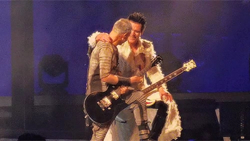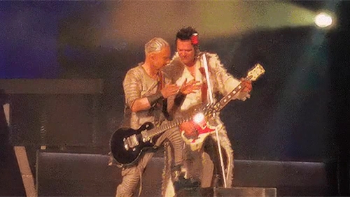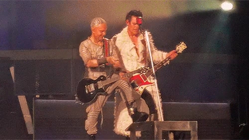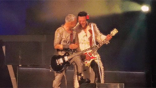 Пого вчора під час концерту сидів у підсобці Ріхарда. Пауль Сонне сидячи грав. Притому це момент, коли йому треба співати. Але потім їм треба ставати на коліно, то Пауль заздалегідь вмостився. Ріхард поглядав на таку зміну пози свого гітариста.