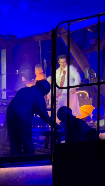 Концерт почався – і знову пиздець із нарядом Оллі. Оллі у червоному. Здається, червоний наряд з минулого туру. Армія депресивних, прости Господи: хто в золотому, хто в червоному, хто з написом на всю спину, хто з розрізом вище попки.