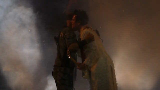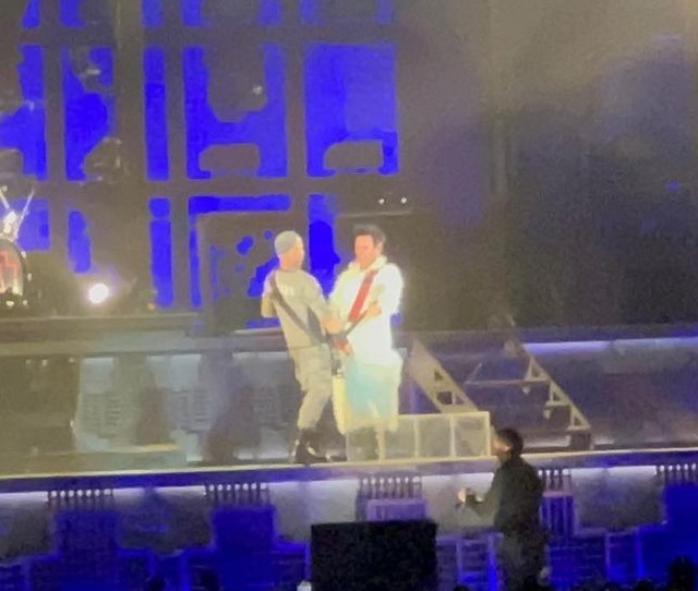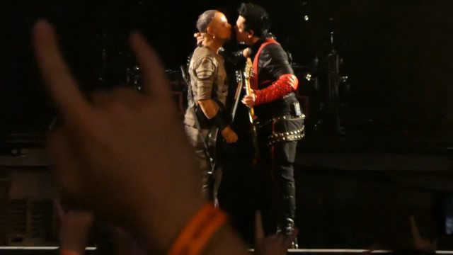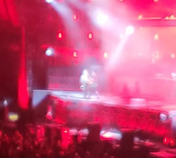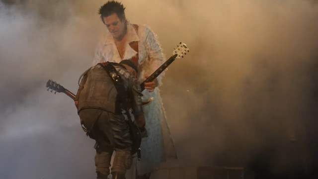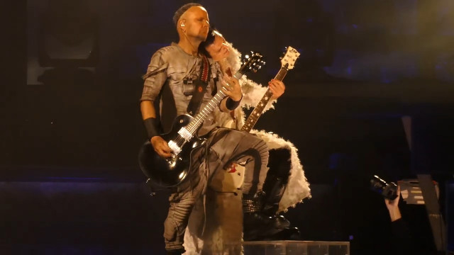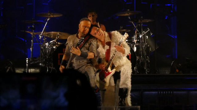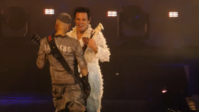 О Боже. Аусландер-кусс. Дама привселюдно заявила права на герра. Дама знову стала грати свою варіацію соло, але тепер герр був готовий до цього, і сама дама не погрузилася повністю в світ її гітари. Герр пішов на сходку сам, але дама не змусила його довго чекати. Дама знала, що її герр нетерплячий. Гітаристи дограли, що хотів грати Ріхард, і почався пиздець. Дама витягнула губки і закивала герру, начебто «я знаю, що ти хочеш поцілуйчик, зараз будемо цілуватися». Запевнивши таким чином герра, дама засміялася, повернулася до залу і стала показувати пальчиком на зал, на себе і на герра. Тобто «аплодуйте, я зараз збираюся поцілувати його». Герр стоїть як засватаний, а дама своєю м’якою, але сильною ручкою хватає його за шию, притягує до себе і міцно цілує. Проте герр сам дуже хотів цілуватися, він губи вип’ятив так, що куди там качці. Поцілувавши герра, дама знову повернулася до залу і кивнула головою, відчитуючись, що вона це зробила.