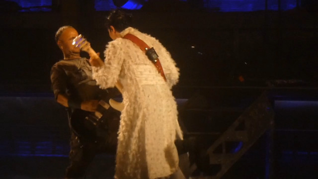 Ду Хаст і Сонне https://youtu.be/uR68Rq-4QuU добре видно Ріхарда, що є дивом при близьких зйомках. У дами зачіска розвалилася, очі намазюкані – але яка ж вона прекрасна. І округла. По дамі помітно, що вона ласує солодкими десертами – у неї личко і животик округлилися. Дама і тортики – це любов навіки, як би Ріхард не розповідав, що обмежує себе в солодкому. Да-да-да, бачили ми його обмеження. На початку Ду Хаст, коли Ріхард розвернувся після соло, він промовив "ду". Це так мило – те, що він після всіх цих років не автоматично грає, а продовжує відчувати пісню і підспівує. На відміну від Ріхарда Тілль працює на автопілоті, і Тілль у дуже поганому стані. Він знову на наркоті. Плюс до страшної рожі, скляних очей і втраченого голосу Тілль ще став сильно хромати. І на відміну від колінок і спинки Ріхарда ніякої милоти у Тіллевій нинішній походці немає.