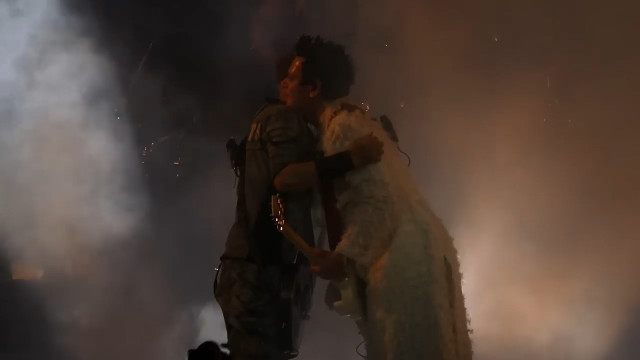 Аж дивно, що на фіналі такого концерту гітаристи не влаштували дрочку чи лобизання, а просто зчепилися ручками під час поклонів. Що сталося з герром у Філадельфії? Може, коли перед концертом дама рулювала шикарним лімузином, вона збила герра, й у нього реально контузія? Та ні, не треба шукати легких пояснень, герр попав не під колеса лімузину, а під чари дами.
