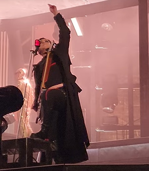 Коли гітаристи піднялися на другий поверх, то самі охуїли зі своєї автоматизації навколо барабанів – вони зрозуміли, що тепер їм нема як зручно розміститися там. Дама ручки в сторону розвела жестом «і шо тепер?» Гітаристи вмостилися на краях помосту барабану, дама аж прижалася животиком до огорожі, по якій їзде камера. Камера якраз стояла біля герра, і герр став у неї пальці тикати. Коли камера поїхала в сторону дами, дама навіть не подумала посунути свій животик, щоб камера могла проїхати. Розтанцювалася дама як ніколи, чудо, що вона з помосту не звалилася.