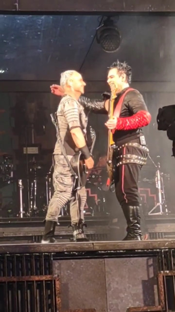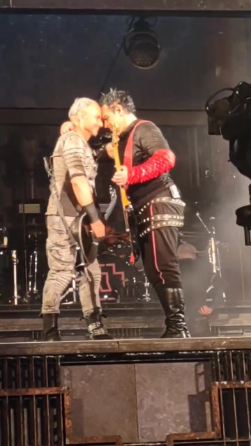 Аусландер https://youtu.be/NlC3K2eGEY0 Фінальний Аусландер-кусс – це найемоційніший момент туру. Беззаперечно, це самий сильний момент. Тут було все: гітаристи зробили носики і лобики, вигравали один одному серенади, потім Ріхард потягнувся до шиї Пауля, але Пауль не чекав, поки Ріхард притягне його – Пауль сам потягнувся цілуватися. І після цього поцілунку все це перестало бути грайливим. Неможна більше мило жартувати з Аусландер-куссів. Для Ріхарда це занадто серйозно. Після поцілунку він прижався лобом до Пауля, і бачить Бог, він плакав. Ріхард розплакався і прижався до Пауля, з усієї сили обійняв його. Пауль у відповідь прижав до себе Ріхарда, як у них на гітарах струни не порвалися. Коли Ріхард піднявся з плеча Пауля, він потягнувся цілуватися, і гітаристи знову поцілувалися, а потім розійшлися – без хохоту і махання руками.