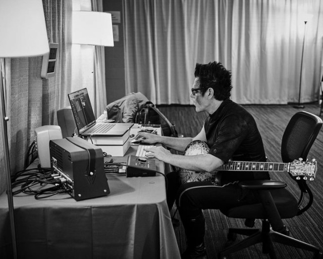 Сонечко Ріхард. Ріхард постійно має бути зайнятим чимось. А оскільки він повністю занурюється в роботу, то втрачає відчуття часу. Годинник показує, що йому вже пора бути під сценою – а він ще сидить за ноутом. Так само під час концерту Ріхард, перебуваючи в підсобці в перерві між піснями, знаходить собі якусь роботу – і в наслідок запізнюється на сцену. Але, сонечко Ріхарде, не треба жалітися на постійні очікування в турі, в турі з цим легше, ніж під час зйомок кліпів, отам геть жахіття – по дванадцять годин сидіти, чекаючи невідомо чого. А у турі хоч є вірна гітара. І у турі Ріхард може народжувати ідеї. Що він і робить на цьому фото.