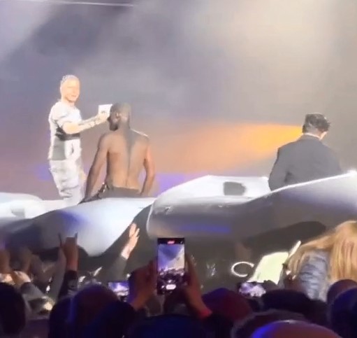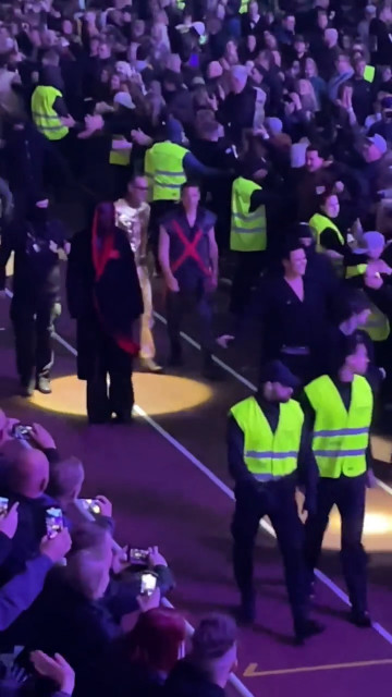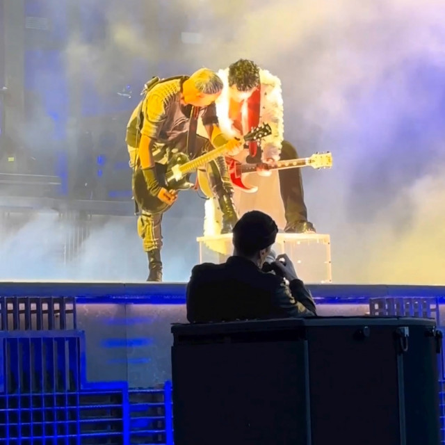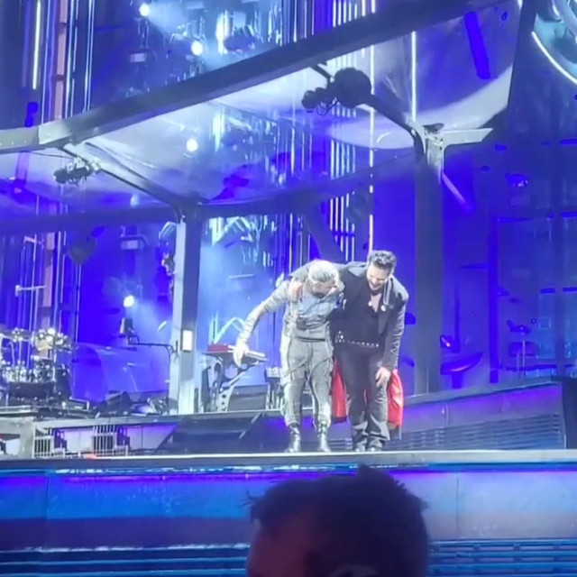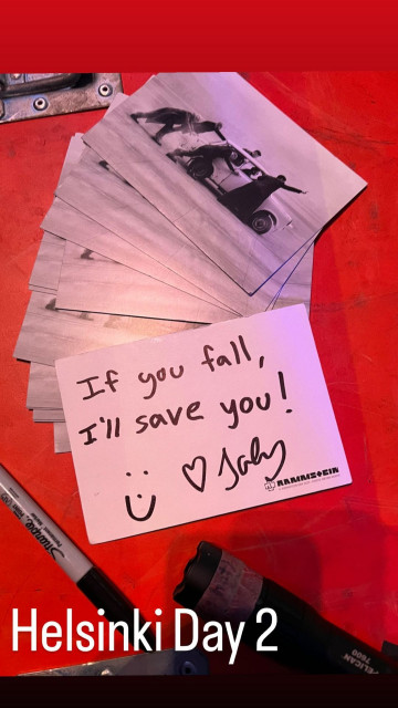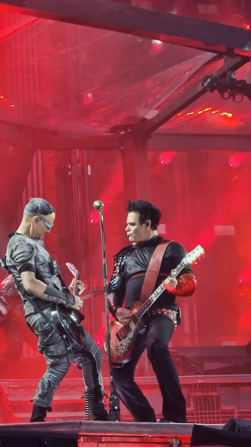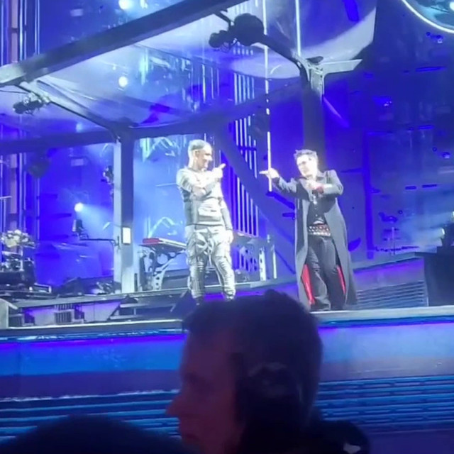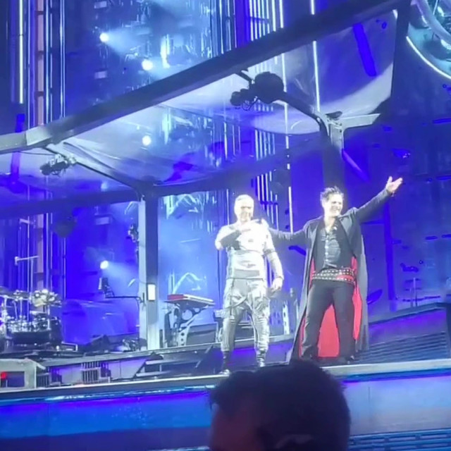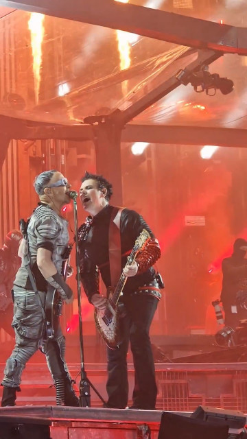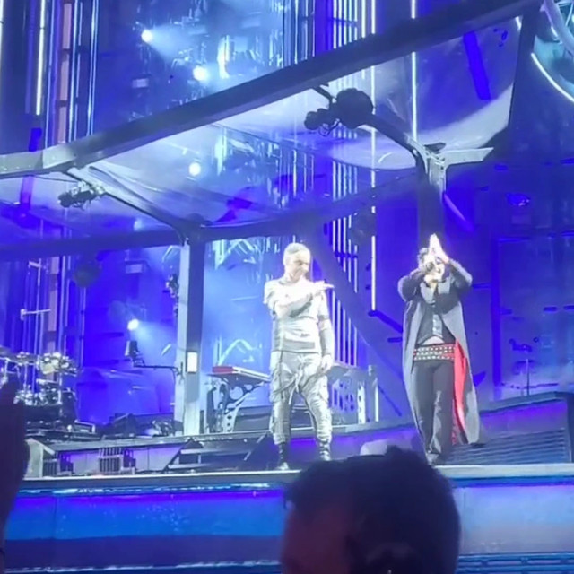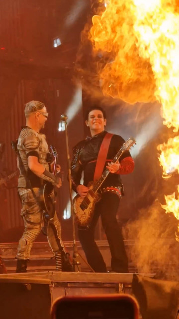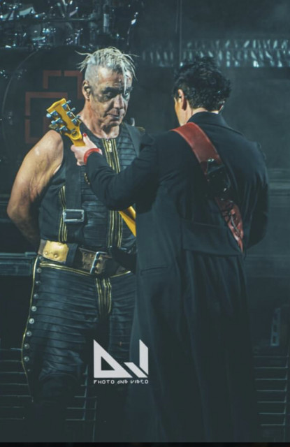 МТ було з поклонами герра, дама піднімала гітару. Нема поки що в хорошій якості зйомки. До барабанів дама підіймалася й веселилася там. На поклонах після Сонне герр став біля дами.