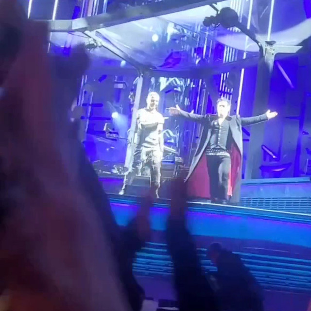 Йдучи на фінальні поклони дама Ріхард традиційно обняв Флаке. Фінальні поклони були шикарні: дама стала на коліно, не прибравши поли плаща, і стоячи на колінці не посилала народу вайби подяки, а заходилася перекидати праву полу на ліву сторону. Покопошилася і благополучно піднялася – дуже легко піднялася, навіть ручкою не опиралася на колінко, допомагаючи собі. Просто легко встала. І пішла розкланюватися. І її догнав герр. Боже мій, як для них природньо падати в обійми один одного. Дама йшла з розведеними руками, вітаючи народ – і герр просто і природньо ступив перед її рукою, і вона його обняла. Вони це вже автоматично роблять, нормальний рефлекс подружжя. Хоча вони досі сяють один одному як молодожони. Дама тримала ручку на плечі герра й коли дама нахилялася, то тягла герра за собою. Боже мій, яка вони прекрасна пара. Перфекціоніст Ріхард отримав свою перфекцію: герр, дама і животик дами