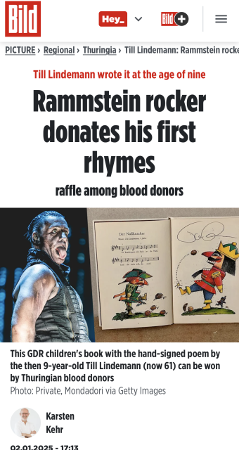 Поки Тілль святкує, його менеджер організував чергову благодійну акцію від Тілля - цього разу на підтримку донорів крові Тюрингії. Серед призів книжка з пісенькою, яку написав 9-річний Тілль. Щелкунчик. Сутність Тілля проявлялася з дитинства.
