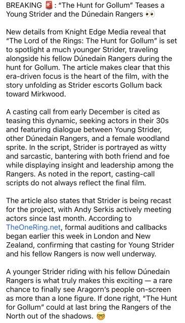 Зйомки «Фундації» аж до липня означає накладку зі зйомками «Полювання на Голлума». Хоча нема жодних натяків на те, що Трандуїл з’явиться в новому фільмі. Останні новини взагалі зменшують таку вірогідність: зараз режисерська команда шукає актора на роль молодого Смеагорла. Тобто виходить, що фільм буде орієнтований на довгий життєвий шлях Голлума, а раз так – то про перебування Голлума у полоні в королівстві Трандуїла можуть показати п’ятихвилинною сценою.