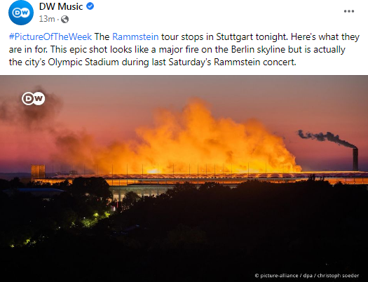 DW знову про Раммштайн пише. А видовище дійсно страшне. Хто не знає, що в місті грає Раммштайн, може всерйоз перелякатися.