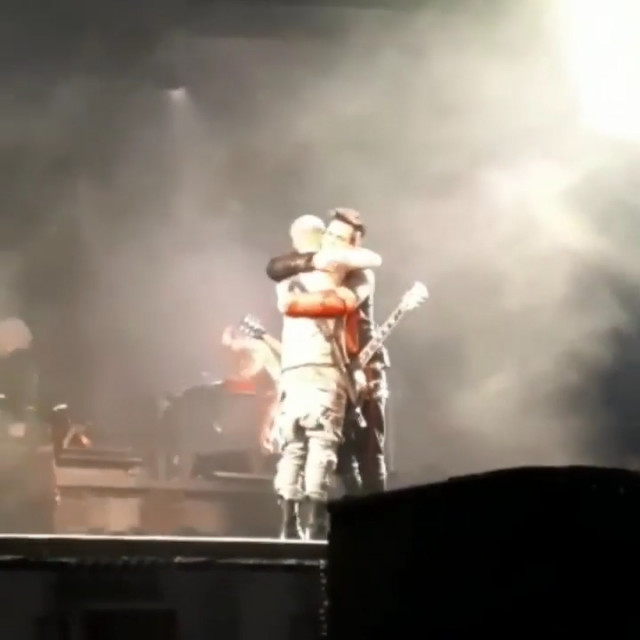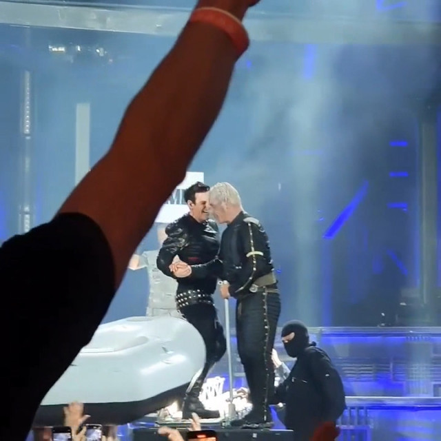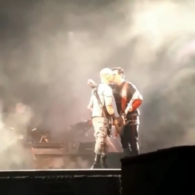 Після шаленого настрою Королеви на концерті на Аусландері повернення до солодкого поцілунку і міцних обіймів. Ріхард посміхався перед поцілунком. Потягнулися цілуватися вони обидва. А потім Ріхард цепкою ручкою притягнув Пауля за шию до себе і захотів обіймів. Вперше за всю історію куссів гітаристи заплуталися руками. Ріхард хотів повністю повіситися на Пауля, але Пауль звик класти праву руку на плечі Ріхарда, і Ріхард уступив йому. Знову їхні обійми тривають довго, вони не хочуть і не спішать розліплятися, стискують один одного з усієї сили і стоять впритул https://www.instagram.com/p/Ce9s0WlFgkQ/