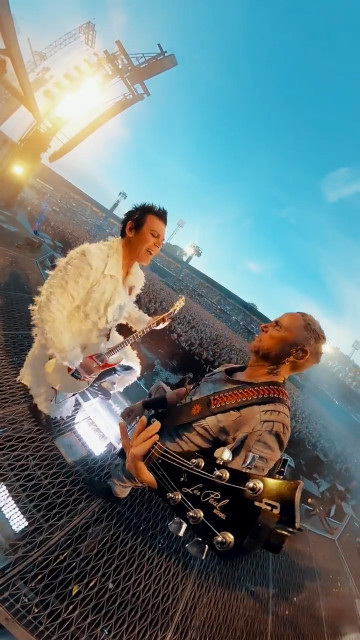 Пальчики і невгамовні гітаристи, відстань їх не зупиняє від спілкування. Але якщо Ріхард буде продовжувати так веселитися, він або виронить з рота свій медіатор, або проковтне його.