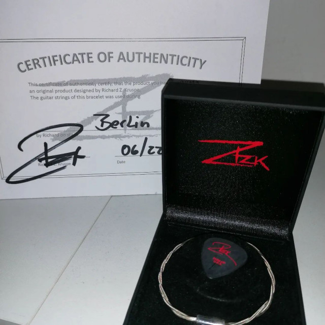 Струнний гітарний браслетик з Берліну – і тепер традиційно чорненьке, а не дивно сіреньке. Сполошна афера з цими браслетиками. Зате як підписана карточка, Ріхард став B робити розчерком Z. Якось воно виглядає як Z, що переходить в P. А в Туріні він на руках людям ставив P, що переходило в Z. Н-да, із цих двох улюблених букв Ріхард може зліпити що завгодно https://www.instagram.com/p/CgCAW2lI0fM/