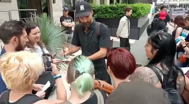 Продовжуючи тему фото з-під готелю в Туріні. Ще одне фото дєвочки перед поїздкою на стадіон. Це вона тільки почала автографи роздавати, личко це не роздратоване. Кох на бойовому посту, як він постарів. Що Летц, що Кох – Кох на один рік молодше за Летца, але обидва зараз виглядають мужиками, що перевалили екватор. У всіх тур висасує сили, лише дєвочка квітне і молодіє.