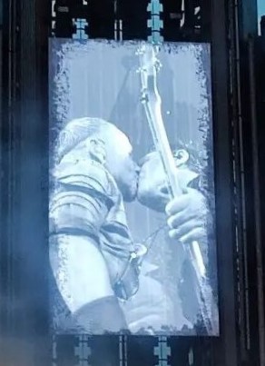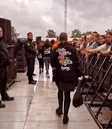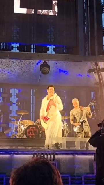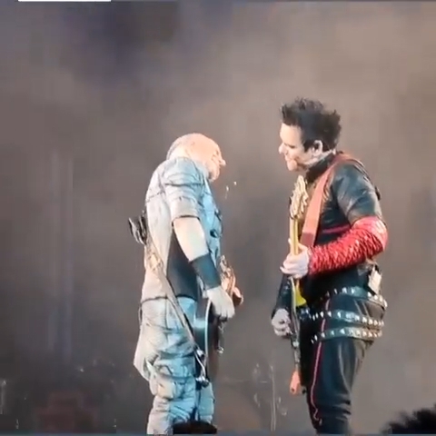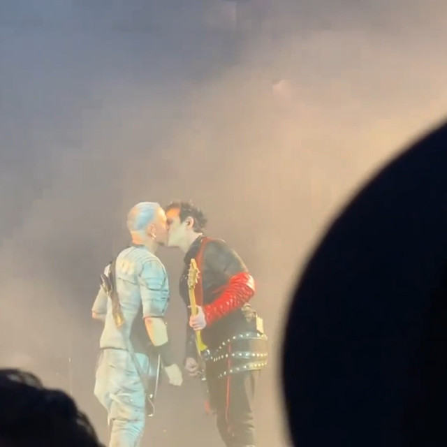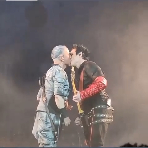 Повний варіант Аусландер-куссу. Дама йшла до герра і посміхалася. І мало з ніг не впала. Не зрозуміло, чи у Ріхарда ногу повело, чи він її невдало вивернув. Проте дама не звернула на це увагу, продовжувала йти і дивитися на герра, який тягнув до неї губи. Вона гіпнотизувала герра поглядом своїх намазюканих глазищ, а потім придумала голову нахиляти. Гітаристи гралися головами і тринькали лише їм зрозуміле що на гітарах, народ кричав kiss – і дивно, що Ріхард не звернув уваги на натовп. Гітаристи поцілувалися, і далі герр учудив – герр втік. Ще такого не було, щоб герр кинув даму, коли дама ще назадовільнилася, дамі ж зараз просто одного поцілунку мало. Поцілував і відразу пішов до себе, помахавши рукою на прощання. Дама похохотала людям і продовжила стояти сама, дама явно трохи розгубилася. Було так красиво, а кінцівку герр зіпсував, стоїть дама сама покинута, куди це годиться, кавалер називається, позалицятися залицявся, а як до діла – так у кущі змився https://www.instagram.com/p/CgbETeRFpXi/