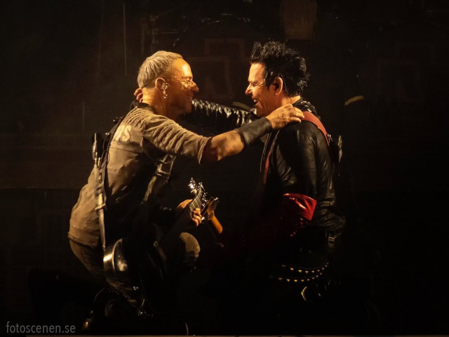 Продовження теми дисбалансу Тіллевої ідеї про тур і того, що роблять гітаристи. Ось так вони повсідалися біля барабанів і теревенили. Герр значить теж об барабан оперся, у дами така сама поза. Це реально пиздець. Теж пиздець, але інший пиздець: концерт іде, а ці двоє обговорюють свої справи і взагалі ні на що не зважають. Схоже, це було суттю вчорашнього концерту: гітаристи перебували у власному світі. Про що вони говорили, яким кольором спальню пофарбувати?