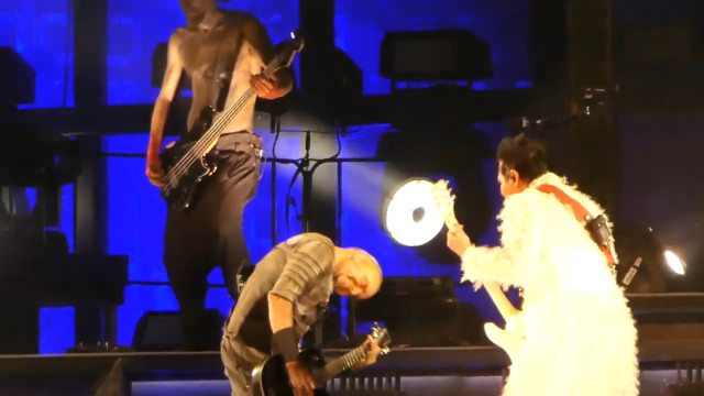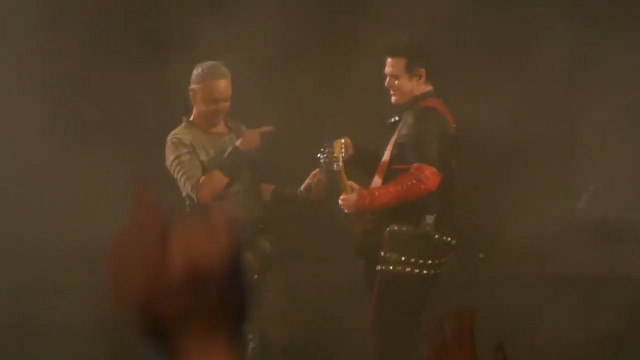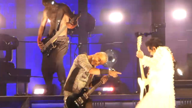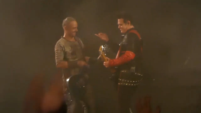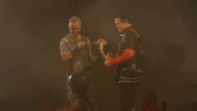 Аусландер – те, як Ріхард грав перед куссом, само по собі є еротикою, це як прелюдія сексу. Цього разу Пауль не спішив йти на середину сцени, а дочекався, поки Ріхард награється своїм соло, і гітаристи пішли одночасно. Коли вони зійшлися, Ріхард всім тілом подався до Пауля, пильно дивився на нього, нахилився до нього і грав для нього, тільки для нього. Ріхард вміє так, скільки разів він робив так на Аусландері, і кожного разу це вражає: він наче освідчується в коханні своєю грою, своєю музикою він передає те, що звичайні люди кажуть словами, але музика Ріхарда значно сильніша за слова. Це так сильно, коли він отак грає для Пауля. Коли Ріхард дограв і гітаристи зробили кусс, Пауль показав пальцем на Ріхарда, Ріхард показав на Пауля, а потім на себе. Ріхард сам себе похвалив – і є за що. Слід відмітити особливу контужену посмішку Пауля після поцілунку. Геть неадекватну посмішку. Але після того, як герр розчепірив рота для дами, це нормальна реакція.
