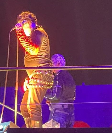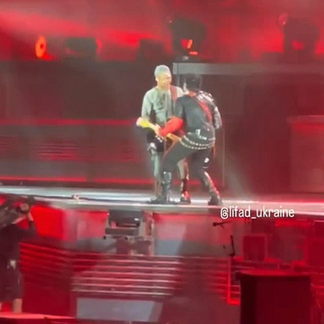 Перехід на маленьку сцену. Перший йде Кох з палкою, з усіх раммштайнів один Ріхард радіє і хлопає долонькою по руках фанів, інші всі йдуть виморені https://www.instagram.com/p/Ci8LsqGvT9P/