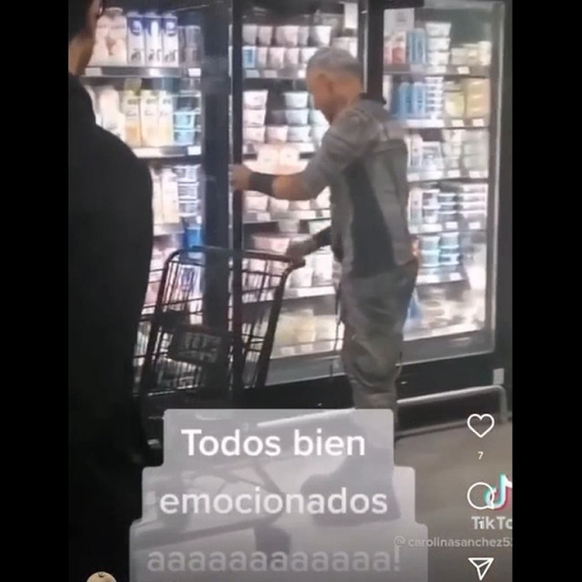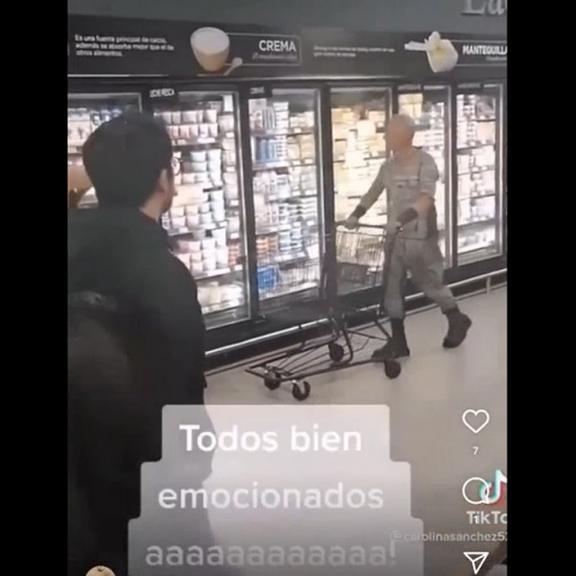 Щось герр так дивиться на молочку, наче він в результаті купить вино, що стоїть виставлене, а дамі доведеться самій купляти продукти на смачненьке.