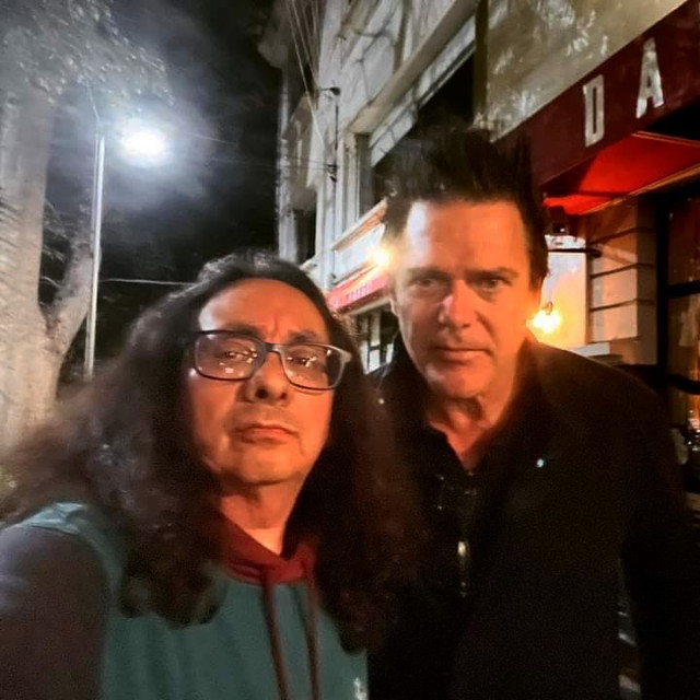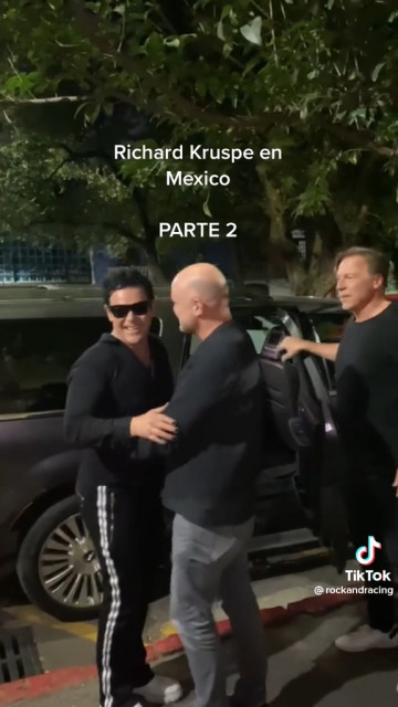 А у такому вигляді Ріхард ходив по Мехіко у перші дні після прибуття, до того, як він підготував собі концертну зачіску й залишився із загладженою челочкою. Аж дико бачити Ріхарда в Мексиці з волоссям дибки. Чому він не носив там кєпочку? Нормальна чорна сорочка – теж дикість, виявляється, у нього в Мексиці був нормальний одяг.
