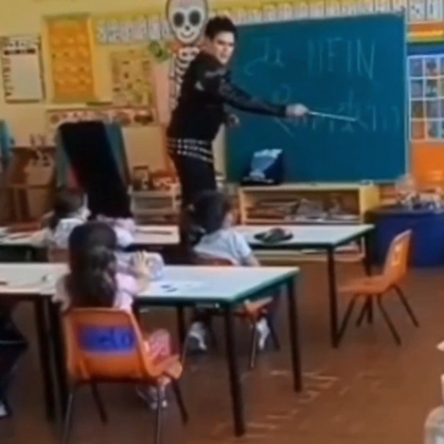 Ріхард біля дошки – це шедевр сам по собі, як він пише на дошці. Писати крейдою Ріхард явно не вміє, він занадто сильно надавив, і шматок крейди відломився. Да, пальчики Ріхарда лише виглядають тендітними, насправді вони дуже сильні. А от указкою Ріхард дерижує, наче паличкою. Боже, яка це милота. І він сам насолоджується цим, як сяє його личко. Який приємний у нього голос. Хоча не дивно, що за один урок він посадив голос сильніше, ніж за концерт. Цікаво, що хоча Ріхард однаково добре володіє і правою, і лівою рукою, він переклада указку в праву руку, щоб дерижувати правою рукою, і перекладаючи указку, він одночасно переклада крейду в ліву руку.