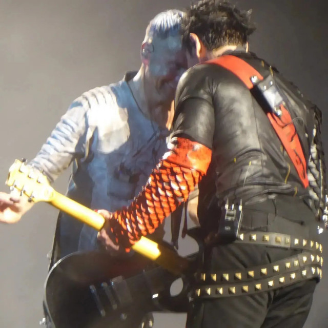 МТ https://www.instagram.com/p/CeF-xN8F2vn/ гітаристи стали ногами на підставку, дама грайливо сяяла, герр старався зобразити суворість. Під кінець соло герр поміняв ногу і розвернувся обличчям до дами, вона теж трохи повернулася, щоб бачити його. Герр так вигибався перед дамою, що аж на коліно став, а вона помахала перед ним ручкою.