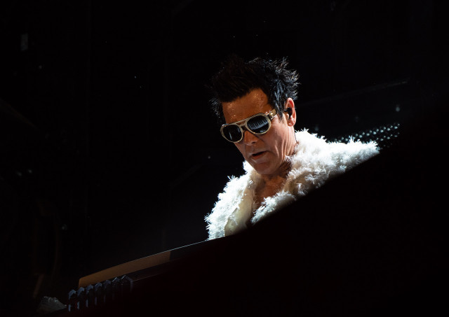 Герр замість того, щоб схватися від дощу, як брутальний неандерталець бігав по сцені.