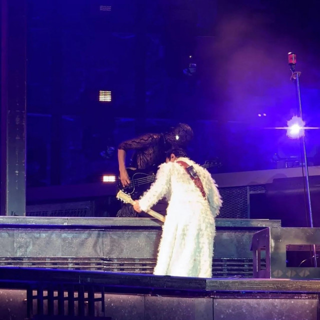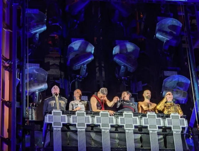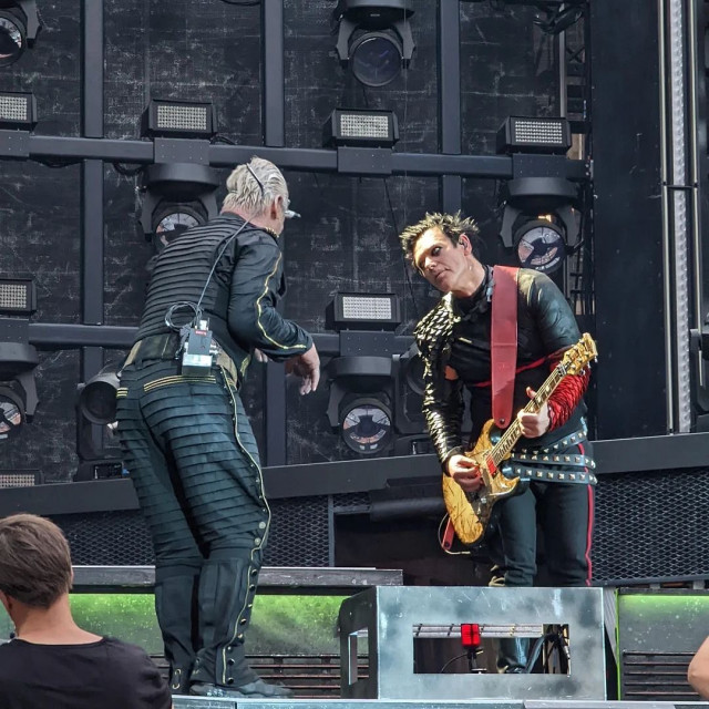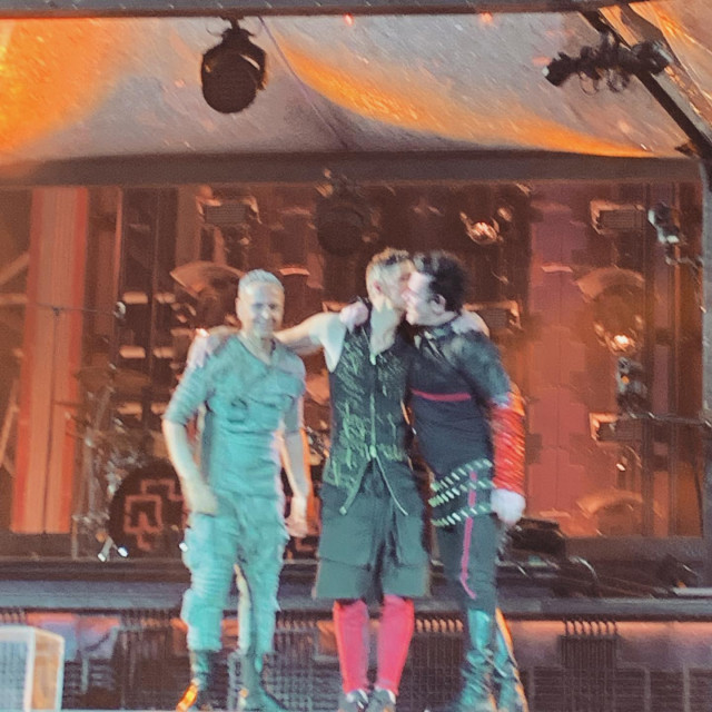 Раммштайни довго не розкланювалися, всі крім дами швидко пішли вниз. На балкончику було весело: Пауль і Шнайдер штовхали один одного плечима, Ріхард взяв руку Шнайдера і підняв вгору їх з’єднані руки, ще вони ручками гралися, вже коли балкончик ховався під екраном. Не дивно, що з таким настроєм гітаристи стали обніматися після концерту.