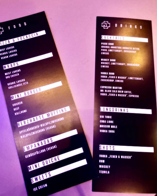 Поки раммштайни готувалися до концерту, для ВІП-гостей накрили стіл. Їжа на афтепаті своєю кількістю та різноманітністю не відрізнялася від обіду для почесних гостей. З їжею там геть туго, жменька закусок на один зуб. Зате алкоголю багато. Але є одне але – алкоголь власний з раммшопу. Їй-богу, точно як у нас: коли замовляєш торжество у ресторані, приносиш своє бухло, бо так дешевше.