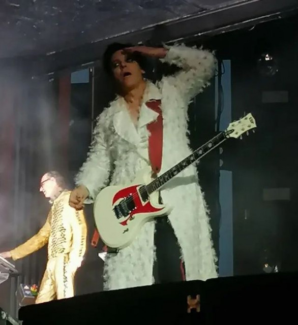 Пуссі https://youtu.be/r2b1FwGqL0k мало було герру проблем з дамою, так ще й з гітарою у нього щось трапилося. Він спустився у підсобку, а коли вийшов, то переключав щось на гітарному процесорі, що стоїть під його мікрофоном.