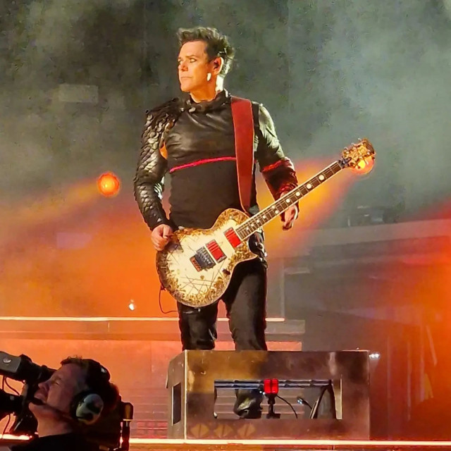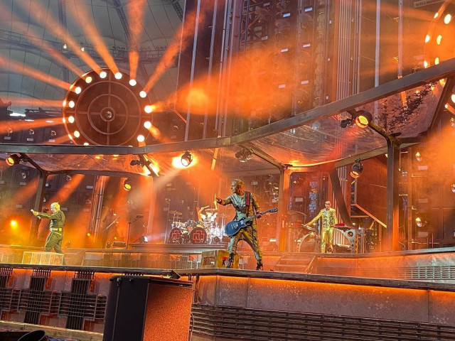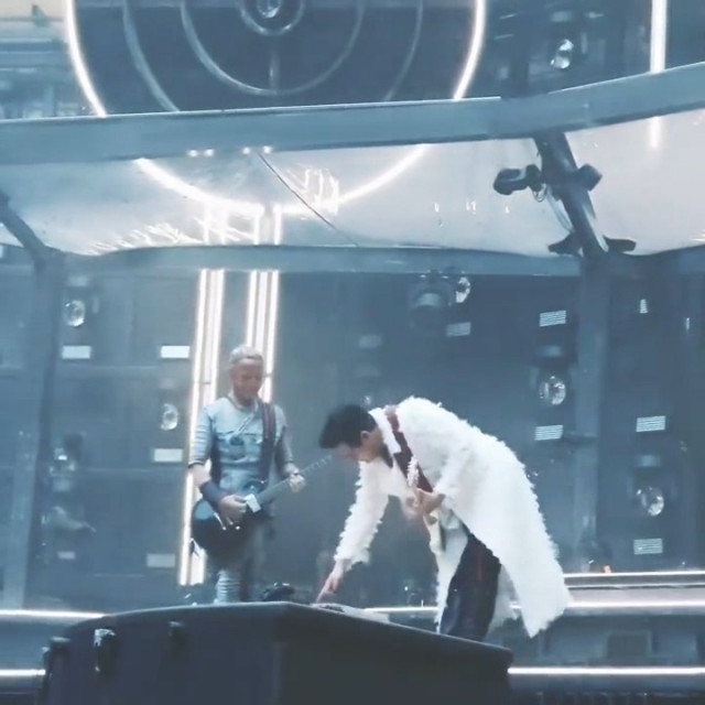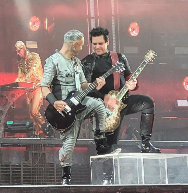 MHB https://youtu.be/PK68fwoTM7I О Господи. Тут гітаристи зійшлися. Дама пішла на підставку Тілля, як вона любила робити на МНВ. Герр подивився і рішуче покрокував до неї. Вона глянула, що він іде, виставила ніжку на підставку, а коли він підійшов – вона стрибком відстрибнула праворуч, даючи йому місце на підставці. Гітаристи стали як на МТ і заходилися грати, поглядаючи на гітари і личка один одного. Гітаристи так захопилися цим, що забули про вокал. Герр потім ускакав, а дама ще трохи постояла-покрасувалася і пішла в куток сцени, бо Тілль вже готував серце. Герр зміг доскакати лише до свого мікрофону, а там його заклинило: він стояв на місці і смикався, наче його струмом б’є.