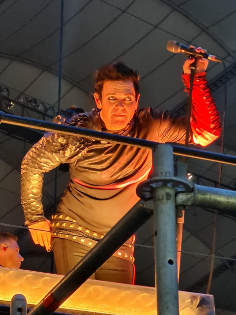 Цайт https://youtu.be/4znn8oRSp8w і на цьому концерті герр, відступаючи назад, коли вийшла дама, прикрив руками своє страусине хазяйство. Герр якось умудрився скуйдовжити собі волосся, і у нього з лівої сторони голови наче ріжки. Мефістофель.