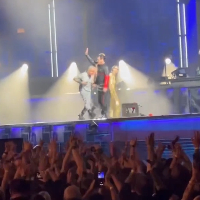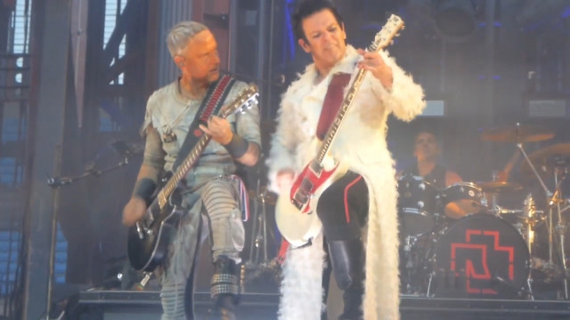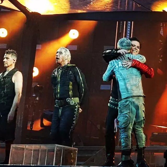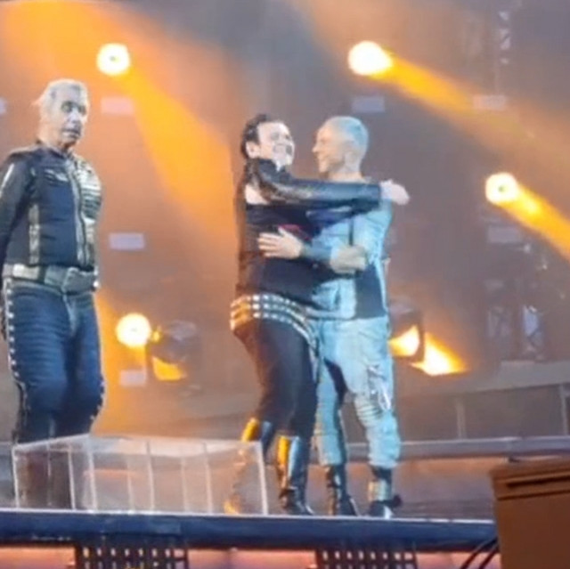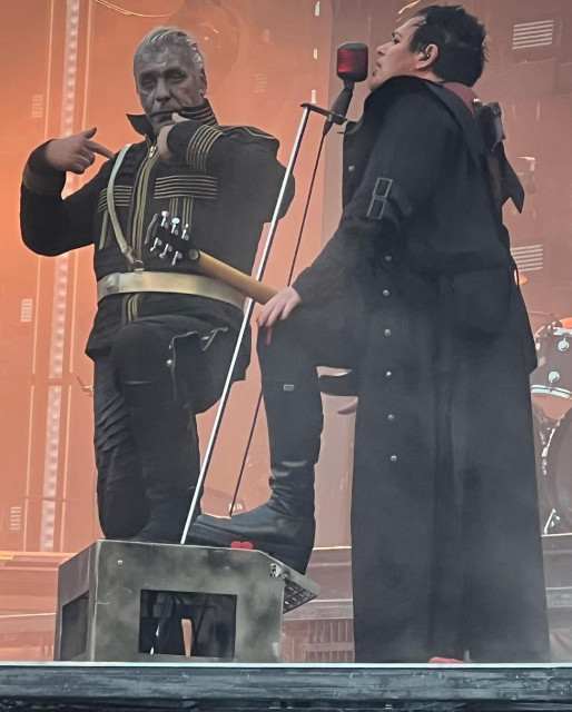 Не забула дама і про герра – знову підходила співати, дама стала робити це традицією. Герр танцював собі, насолоджуючись концертом, і тут до нього підпливла дама. Як прилічний кавалер, герр підняв мікрофон, дама вигнулася, відкрила свого ротика, гітаристи проспівали один раз і дама пішла, не стала затримуватися. Але герр ув’язався за нею і порачкував позаду дами, коли вона йшла до підставки Тілля і красувалася там. Герра щось перманентно скрючило на МНВ, він і за Тіллем ганявся так.