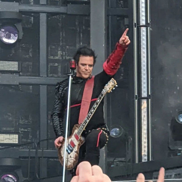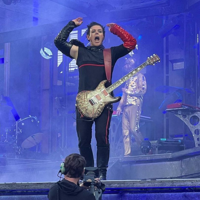 МТ https://www.instagram.com/p/CfSj_JbFRlz/ Під час концерту герр причепив до лівої штанини медальку зі стрічкою кольорів прапору Британії – і ця медалька реально йому потрібна була як відзнака його мужності. Він витримав атаку дами, яка пустила в хід всю заборонену зброю: ніжку, животик і своє коронне хапання герра за задницю. Закінчивши Радіо і починаючи МТ, дама замість того, щоб йти на середину сцени, виставила ніжку на свою підставку. Це при тому, що дама зараз рідко виставляє ніжку, тут вона взялася демонструвати красу. Добившись потрібного ефекту, дама пішла до герра, стала на підставку і оголила животик. Господи, цей животик. Після цього герра стало крючити, а дама стала орати. Хоч і не так, як вона оратиме у Варшаві, але тенденція помітна. Після її демонстрацій і криків прикметний вираз обличчя герра. Я вибачаюся, але герр реально переляканий. Герр слідкував за її ручками на гітарі, не дарма герр боявся цих ручок: догравши, дама схилилася до герра і торкнулася його під задницею. Вже другий раз за тур. Облапала задницю герра і довольна, Господи, яка ж у неї посмішка.