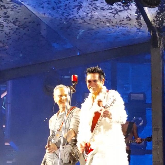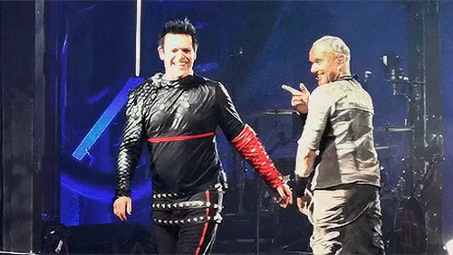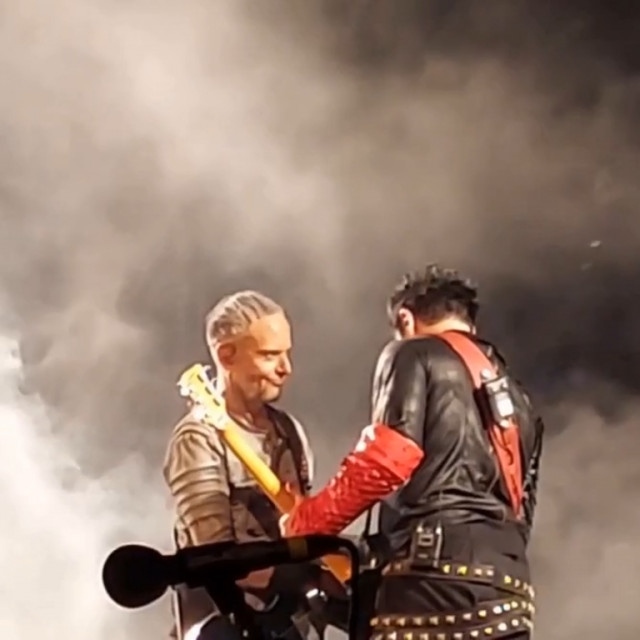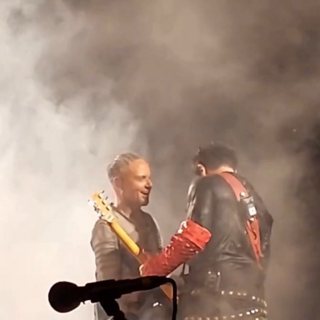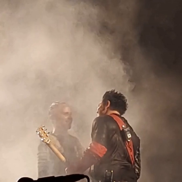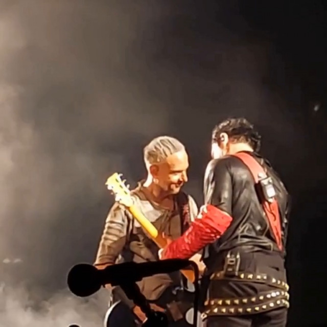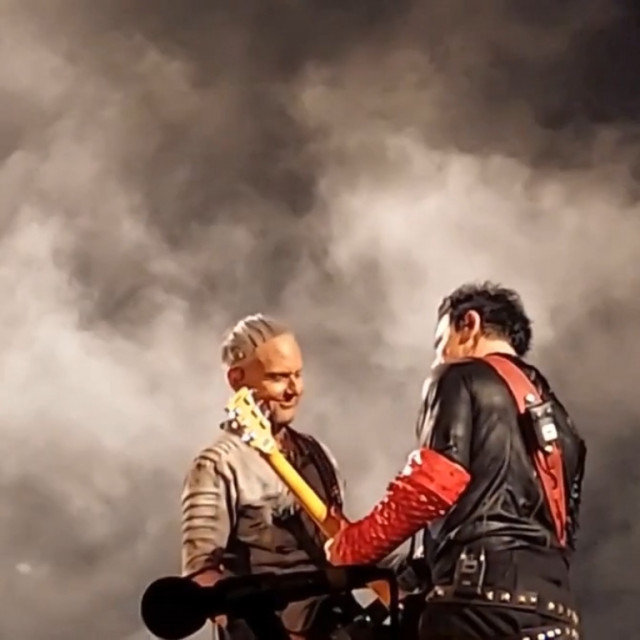 На цьому гітаристи не угомонилися. На фінальних поклонах вони двічі розминалися на сцені – і двічі показували один на одного пальчиками. І сяяли один одному. Герр тримається за серце таким жестом, наче це він не виражає любов до фанів, а у нього через даму серце з грудей вилазить https://www.instagram.com/p/Cl_ZuXvINzS/