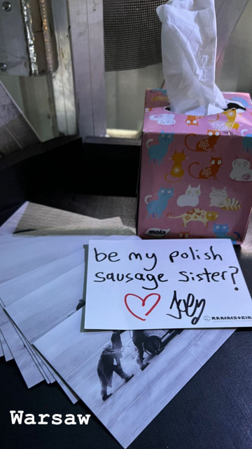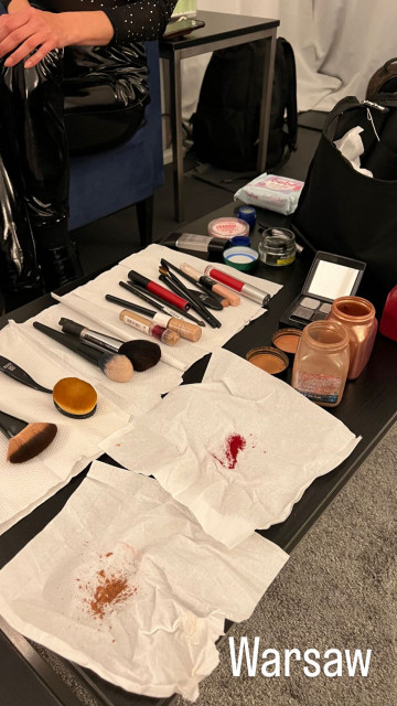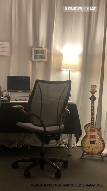 Косметика й музична апаратура – сутність гримерки дами. Знову дама до самого початку концерту сиділа за своєю музикою, а потім зняла з носика окуляри, кинула їх на стіл і побігла зводити людей з розуму. Прикметний аркуш паперу на стіні з вказівками щодо вайфай: у турі-2019 мережа WiFi називалася Kuess mich Net, а пароль HeirateMich. Техніки, які налаштували це, відмінно потішалися над поцілунками гітаристів. У цьому турі відносини гітаристів нікого не дивували, це була звична частина життя, на яку ніхто вже не звертав уваги, тож назва мережі і пароль були нудними стандартними Rammstein і Rammstein.DE.