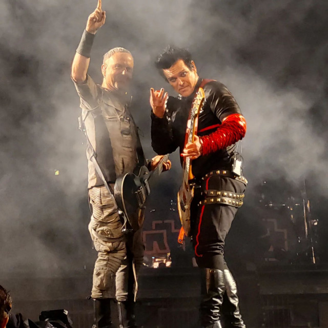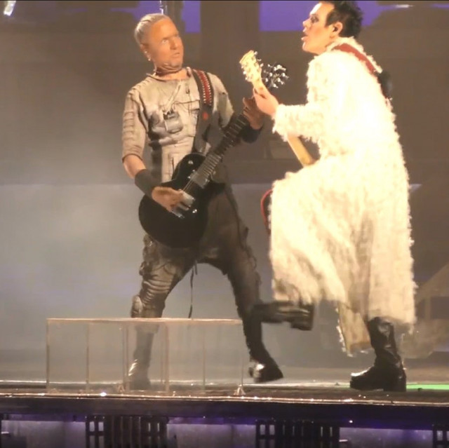 Гітаристи не змогли не пообніматися на фінальних поклонах: дама підійшла до герра, коли той стояв на правому фланзі сцени, притягнула його до себе, вони обнялися за плечі й разом поклонилися залу https://youtu.be/pGGxgfcTGS4 Потім гітаристи знову зустрілися на лівому фланзі сцени й погралися ручками: вона протягнула герру дві долоньки, а він схопив її за передпліччя. І хохочать https://www.instagram.com/p/CgHDBZXDDkT/